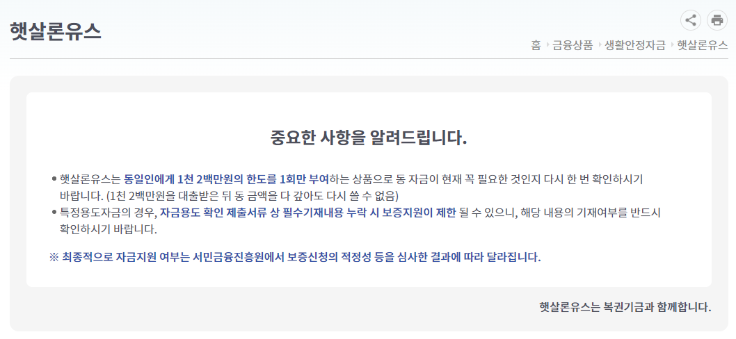 햇살론 상품 대출자격